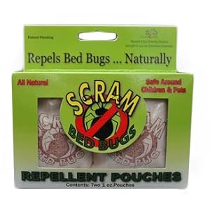 Featured in the NY TIMES, as seen on TV, and endorsed by Health-Talk radio host Janice Marie on "Your Health Matters." A unique blend of herbs and oils in a pouch format allows you to be protected 24/7 while traveling. Designed to fit easily into Traveler's luggage, Hotel dresser drawers and closets, around the mattress or even behind your pillow. Traveling leaves you most vulnerable to bringing Bed Bugs home with you which can lead to a home infestation. All Scram Bed Bug Products have been clinically tested by an Professional Independent Laboratory. Bed Bugs have been found in Hotels, Airplanes, Taxis, Trains, Movie Theaters, just about everywhere and they are excellent hitchhikers. Prevention is the Key to Spreading Bed Bugs! Travel safe and smart with Scram Bed Bug Pouches.Unique Blend of Herbs, Spices, and Essential Oils that Repels Bed Bug NaturallySafe to use Around Children and PetsExcellent for use in Luggage, Hotels, Airlines, Dormitories, Camps, Nursing Homes, Camps